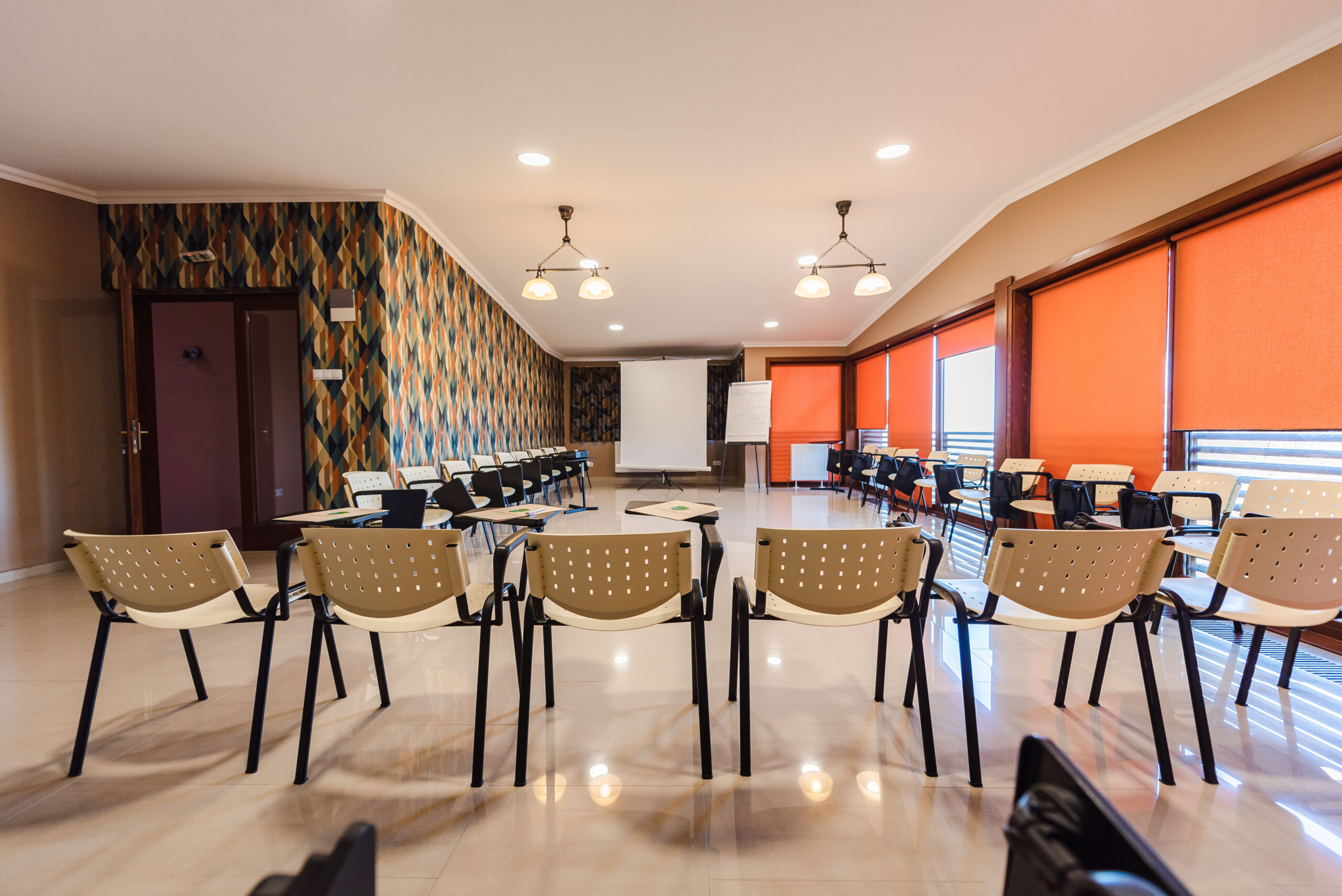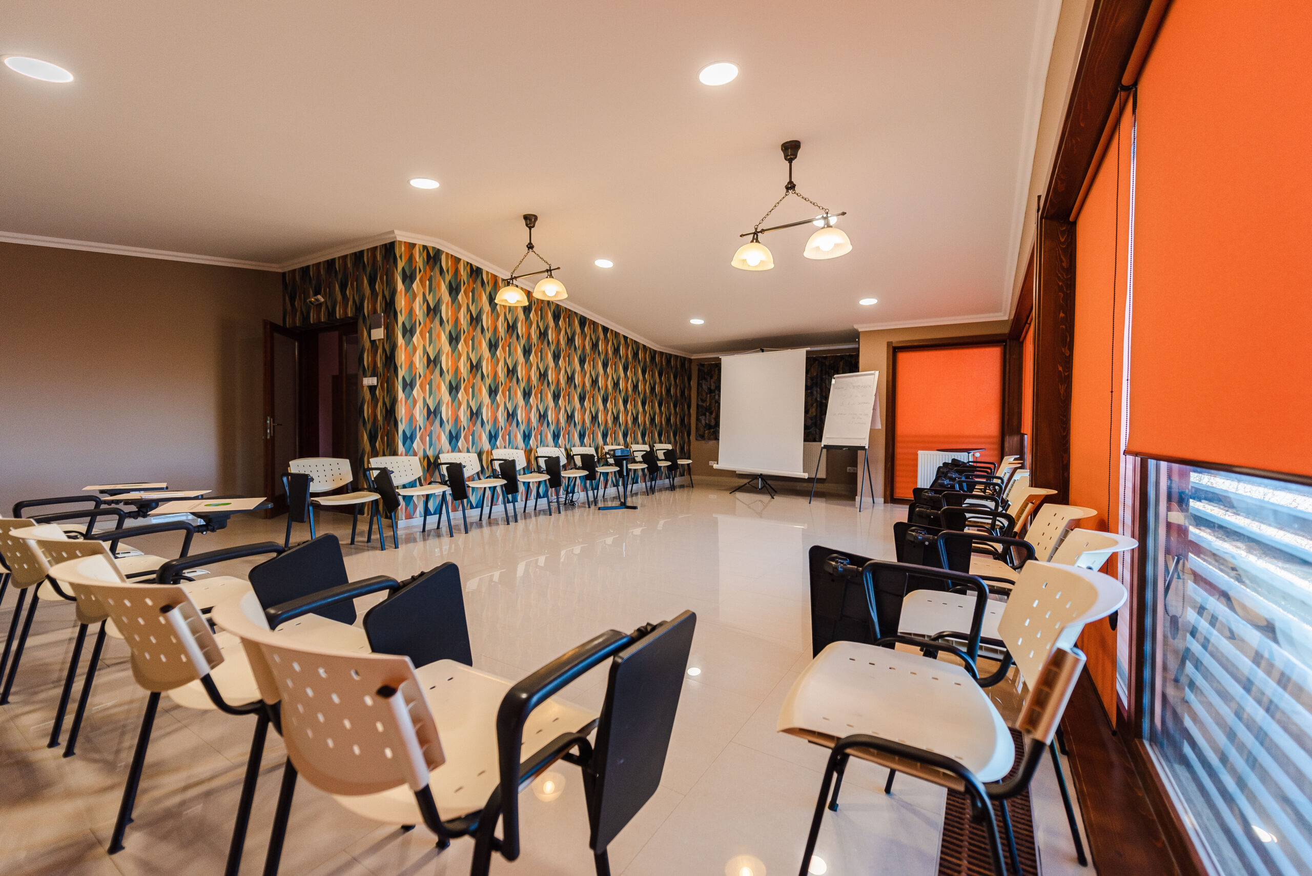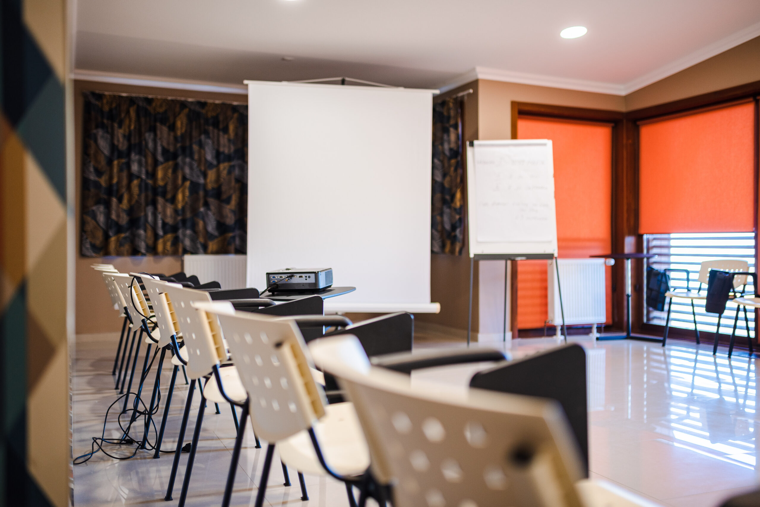 Pentru că știm cât este de stresant să organizezi o conferință, un workshop sau un seminar, am dotat sala cu tot ce aveți nevoie pentru buna desfășurare a activităților: 35-40 scaune cu măsuță individuală, videoproiector, ecran proiecție, flipchart și muuultă lumină naturală.
